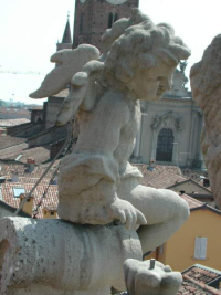 Restauro delle sculture lapidee lungo il coronamento della facciata principale